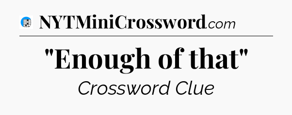 The clue “”Enough of that”” most recently appeared in a USA Today Crossword on December 14, 2025.