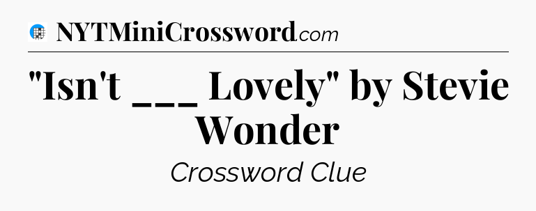 The clue “”Isn’t ___ Lovely” by Stevie Wonder” most recently appeared in a USA Today Crossword on December 15, 2024.