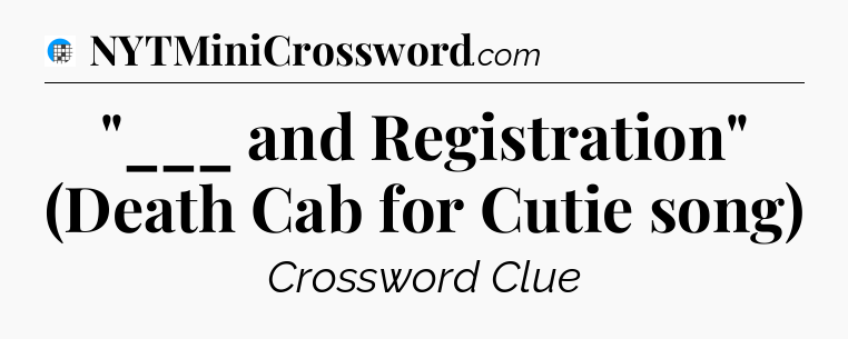 There is 1 possible answer for the crossword clue “”___ and Registration” (Death Cab for Cutie song)”.