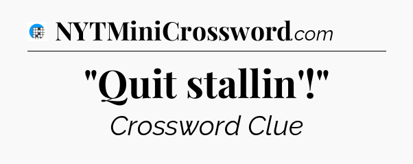 The clue “”Quit stallin’!”” most recently appeared in a USA Today Crossword on December 17, 2023.