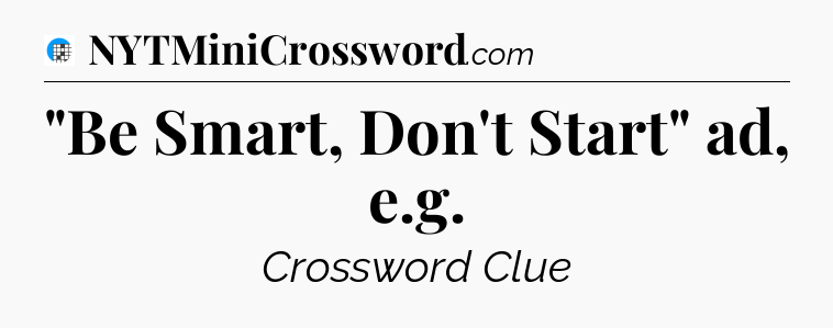 The Answer for “Be Smart, Don’t Start” ad, e.g Crossword Clue is: