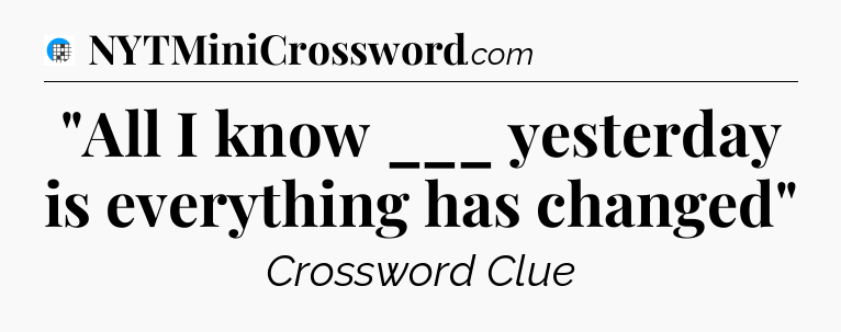 There is 1 possible answer for the crossword clue “”All I know ___ yesterday is everything has changed””.