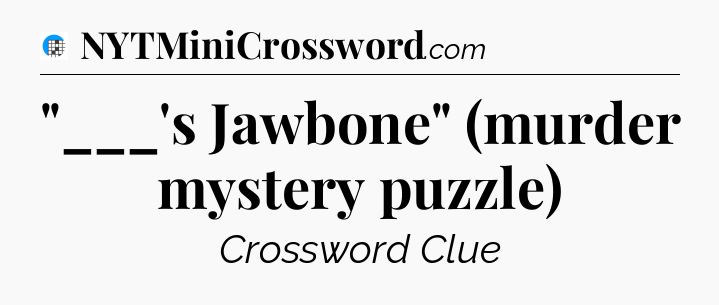 There is 1 possible answer for the crossword clue “”___’s Jawbone” (murder mystery puzzle)”.