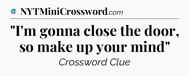 The clue “”I’m gonna close the door, so make up your mind”” most recently appeared in a USA Today Crossword on December 22, 2024.