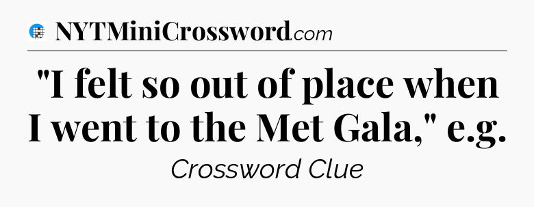 The clue “”I felt so out of place when I went to the Met Gala,” e.g” most recently appeared in a USA Today Crossword on December 24, 2024.