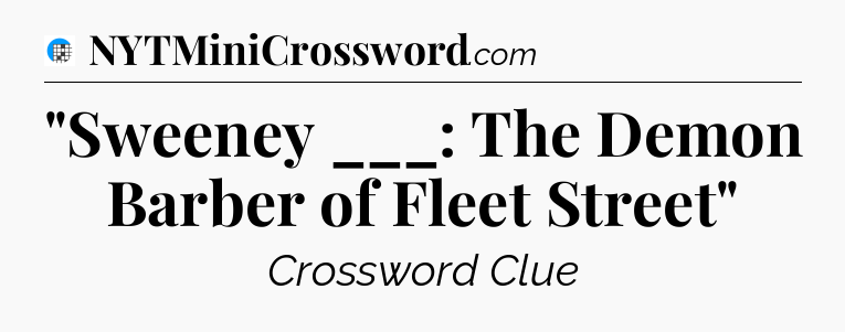 The correct answer to the crossword clue “”Sweeney ___: The Demon Barber of Fleet Street”” is TODD.