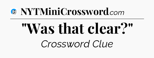 The clue “”Was that clear?”” most recently appeared in a USA Today Crossword on December 28, 2023.