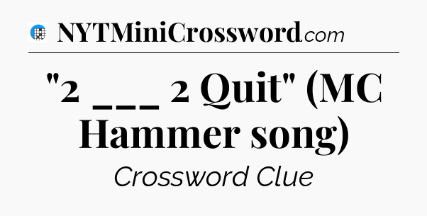 The clue “”2 ___ 2 Quit” (MC Hammer song)” most recently appeared in a USA Today Crossword on December 29, 2025.