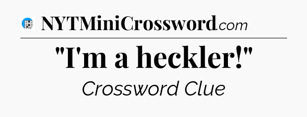 The clue “”I’m a heckler!”” most recently appeared in a USA Today Crossword on December 3, 2023.