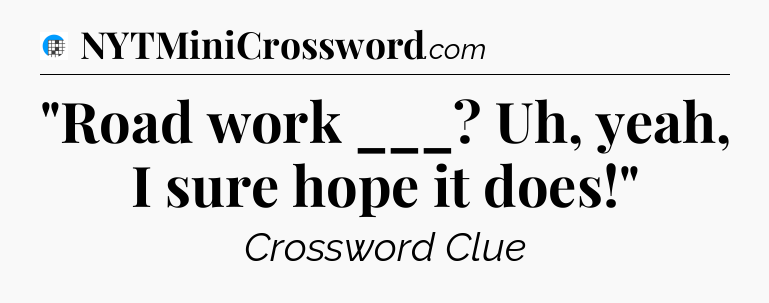 The clue “”Road work ___? Uh, yeah, I sure hope it does!”” most recently appeared in a USA Today Crossword on December 3, 2023.