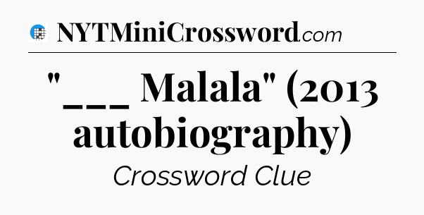 The clue “”___ Malala” (2013 autobiography)” most recently appeared in a USA Today Crossword on December 30, 2023.