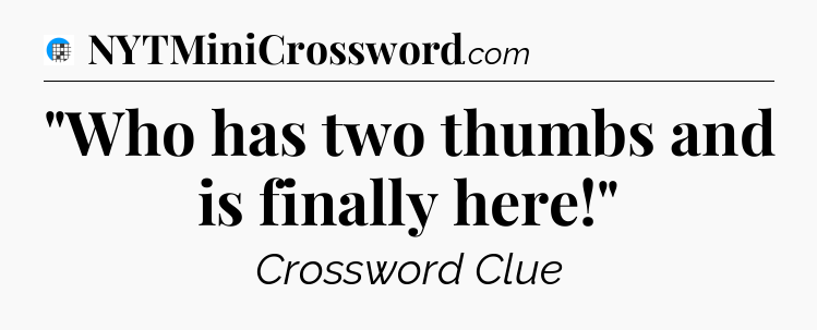The clue “”Who has two thumbs and is finally here!”” most recently appeared in a USA Today Crossword on December 31, 2023.