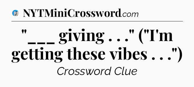 The clue “”___ giving . . .” (“I’m getting these vibes . . .”)” most recently appeared in a USA Today Crossword on December 31, 2024.