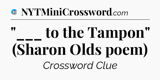 The clue “”___ to the Tampon” (Sharon Olds poem)” most recently appeared in a USA Today Crossword on December 8, 2023.