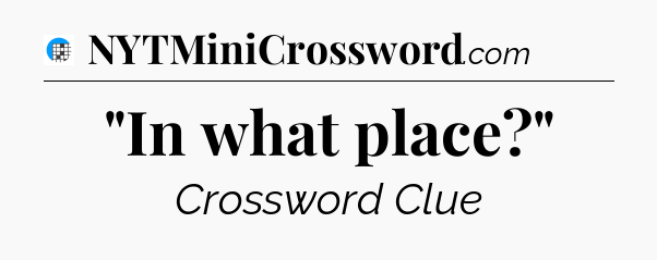 The clue “”In what place?”” most recently appeared in a USA Today Crossword on December 9, 2025.