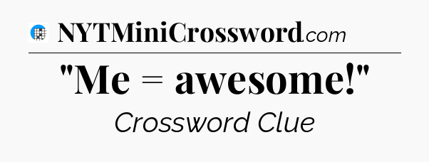The clue “”Me = awesome!”” most recently appeared in a USA Today Crossword on December 9, 2025.