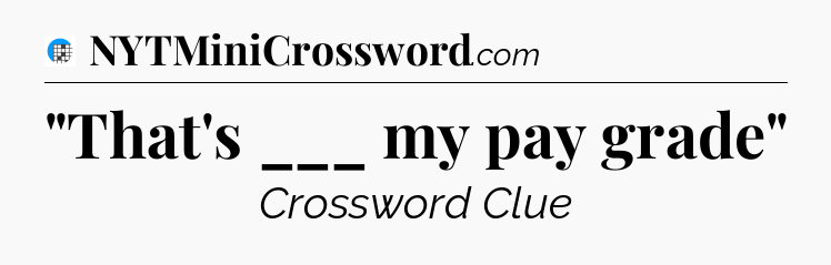 The clue “”That’s ___ my pay grade”” most recently appeared in a USA Today Crossword on December 9, 2025.