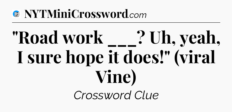 The clue “”Road work ___? Uh, yeah, I sure hope it does!” (viral Vine)” most recently appeared in a USA Today Crossword on February 10, 2024.