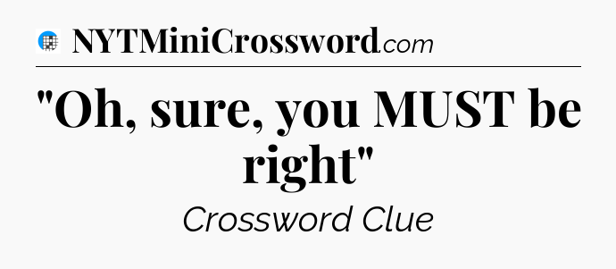 The clue “”Oh, sure, you MUST be right”” most recently appeared in a USA Today Crossword on February 10, 2025.