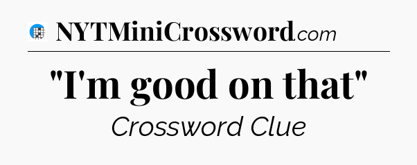 The clue “”I’m good on that”” most recently appeared in a USA Today Crossword on February 10, 2026.