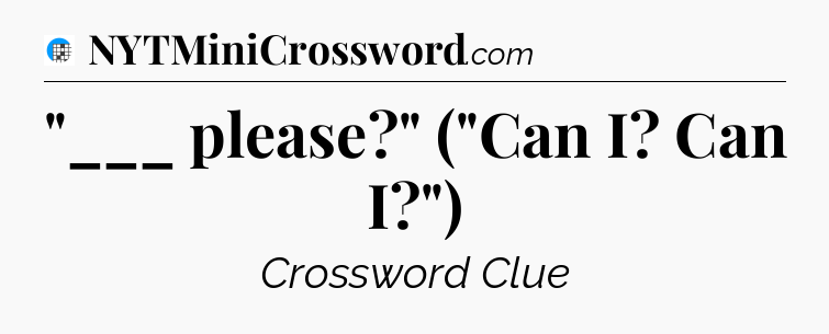 The clue “”___ please?” (“Can I? Can I?”)” most recently appeared in a USA Today Crossword on February 11, 2025.