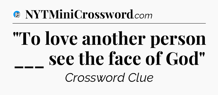The clue “”To love another person ___ see the face of God”” most recently appeared in a USA Today Crossword on February 14, 2025.