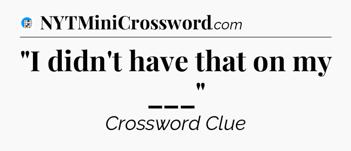 There is 1 possible answer for the crossword clue “”I didn’t have that on my ___””.
