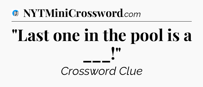 The clue “”Last one in the pool is a ___!”” most recently appeared in a USA Today Crossword on February 24, 2026.