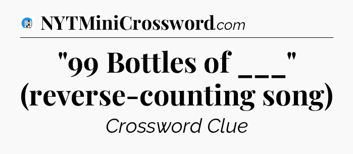The clue “”99 Bottles of ___” (reverse-counting song)” most recently appeared in a USA Today Crossword on February 28, 2024.