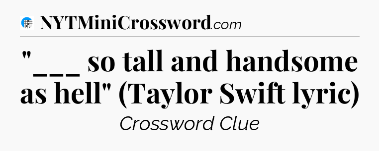 The clue “”___ so tall and handsome as hell” (Taylor Swift lyric)” most recently appeared in a USA Today Crossword on February 3, 2024.