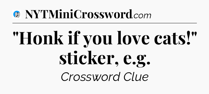 The Answer for “Honk if you love cats!” sticker, e.g Crossword Clue is: