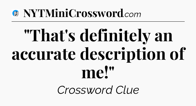 The clue “”That’s definitely an accurate description of me!”” most recently appeared in a USA Today Crossword on February 5, 2026.