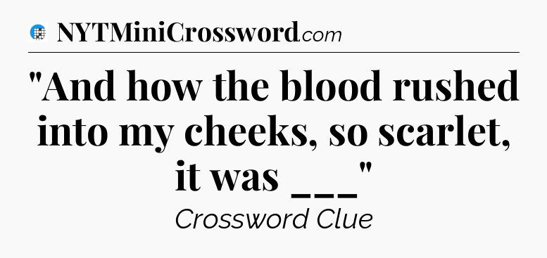 The clue “”And how the blood rushed into my cheeks, so scarlet, it was ___”” most recently appeared in a USA Today Crossword on February 8, 2025.