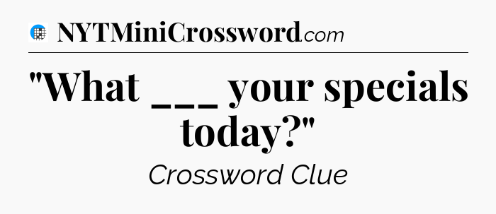 The clue “”What ___ your specials today?”” most recently appeared in a USA Today Crossword on March 10, 2024.