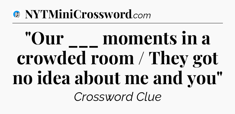 The clue “”Our ___ moments in a crowded room / They got no idea about me and you”” most recently appeared in a USA Today Crossword on March 16, 2025.
