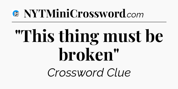 The clue “”This thing must be broken”” most recently appeared in a USA Today Crossword on March 21, 2025.