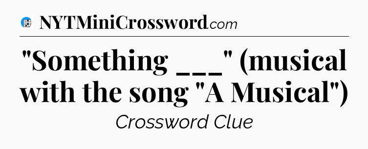The clue “”Something ___” (musical with the song “A Musical”)” most recently appeared in a USA Today Crossword on March 28, 2025.