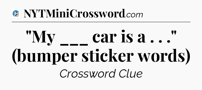 The clue “”My ___ car is a . . .” (bumper sticker words)” most recently appeared in a USA Today Crossword on March 29, 2025.