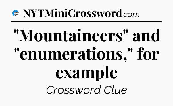The clue “”Mountaineers” and “enumerations,” for example” most recently appeared in a USA Today Crossword on March 29, 2026.