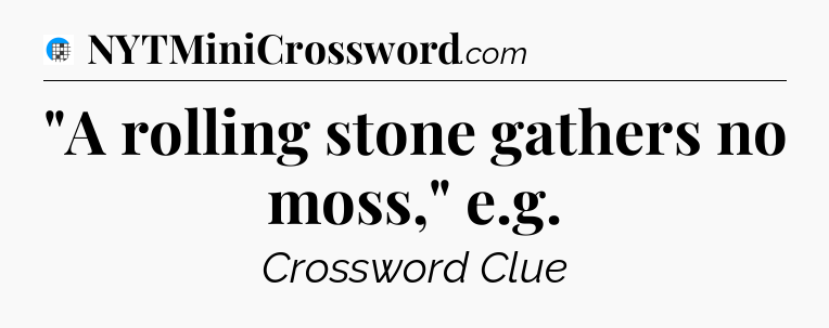 The Answer for “A rolling stone gathers no moss,” e.g Crossword Clue is: