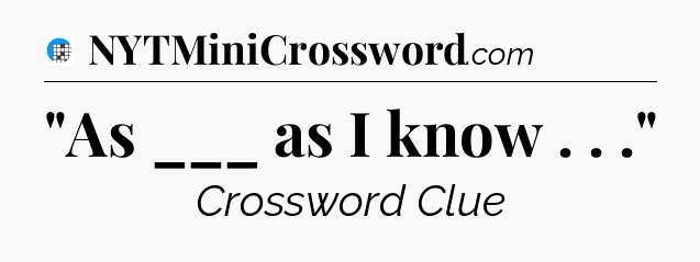 The clue “”As ___ as I know . . .”” most recently appeared in a USA Today Crossword on March 6, 2025.