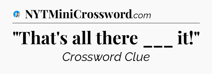 The clue “”That’s all there ___ it!”” most recently appeared in a USA Today Crossword on March 8, 2024.