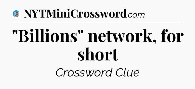 The clue “”Billions” network, for short” most recently appeared in a USA Today Crossword on March 9, 2026.