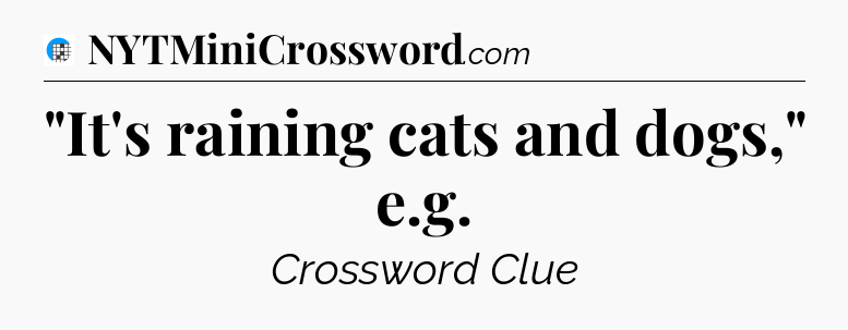 The clue “”It’s raining cats and dogs,” e.g” most recently appeared in a USA Today Crossword on April 13, 2025.