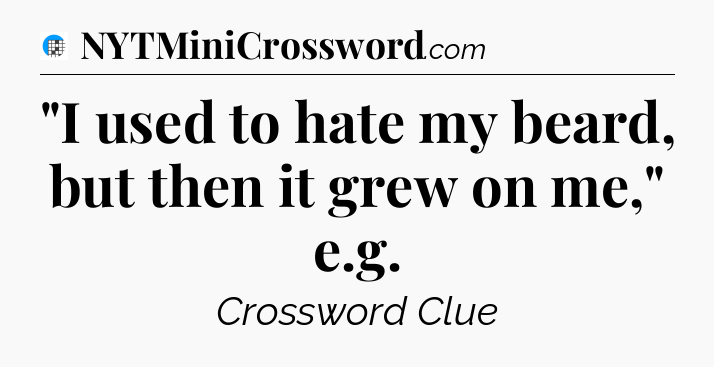 The clue “”I used to hate my beard, but then it grew on me,” e.g” most recently appeared in a USA Today Crossword on April 16, 2025.
