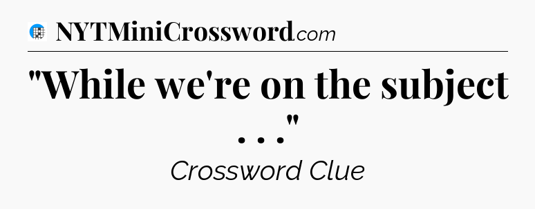 The clue “”While we’re on the subject . . .”” most recently appeared in a USA Today Crossword on April 19, 2025.
