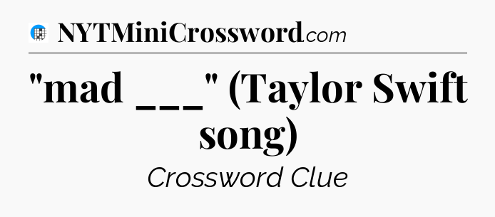 There is 1 possible answer for the crossword clue “”mad ___” (Taylor Swift song)”.