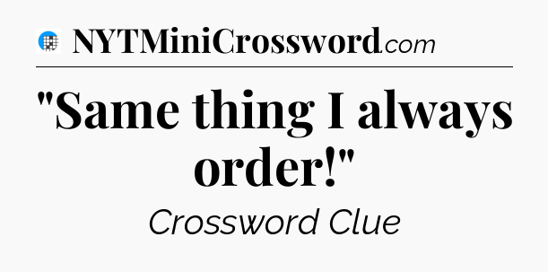 The clue “”Same thing I always order!”” most recently appeared in a USA Today Crossword on April 20, 2024.