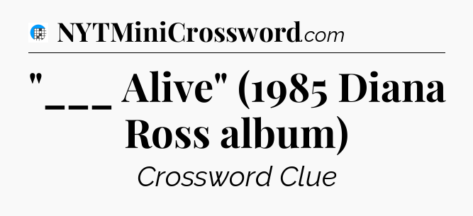 The clue “”___ Alive” (1985 Diana Ross album)” most recently appeared in a USA Today Crossword on April 20, 2025.