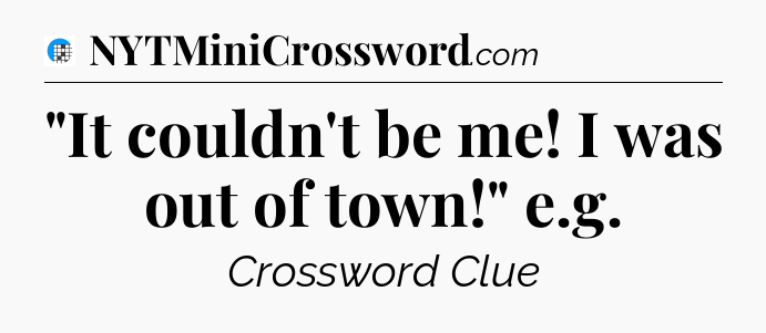 What is the answer to the clue “”It couldn’t be me! I was out of town!” e.g”?